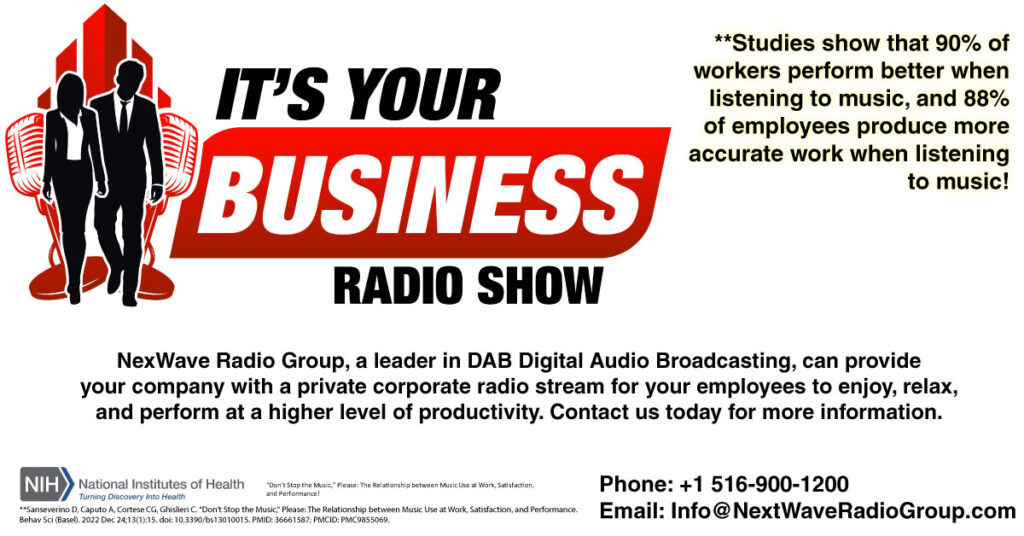 NextWave Radio Group, a leader in DAB Digital Audio Broadcasting, can provide your company with a private corporate radio stream for your employees to enjoy, relax, and perform at a higher level of productivity. Contact us today for more information.